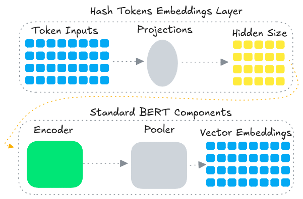 This article introduces a new series of BERT Hash Embeddings models. It builds on the previously released BERT Hash model series. These models generate fixed dimensional vectors that can be used for semantic textual similarity, semantic search, paraphrase mining, text classification, clustering, and more.