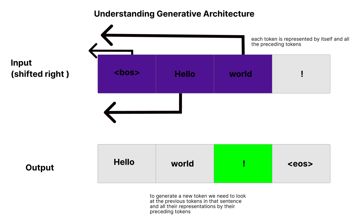 - to generate a new token the model needs to look at all the previous tokens and their representations by their preceding tokens