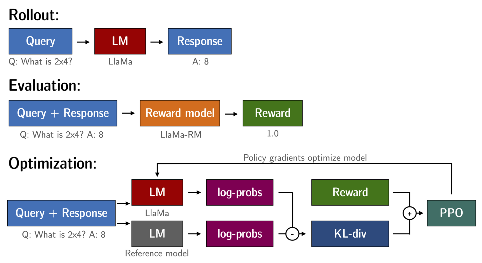 where is the reward from the reward model and is the KL-divergence between the current policy and the reference model.