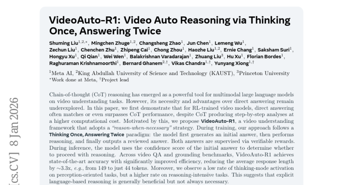 VideoAuto-R1: Video Auto Reasoning via Thinking Once, Answering Twice